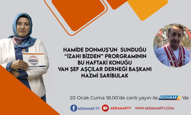 Hamide Donmuş’un Akdamar TV’de hazırlayıp sunduğu “İzahı Bizden” programının bu haftaki canlı yayın konuğu Van Şef Aşçılar Derneği Başkanı Nazmi Saribulak oldu.